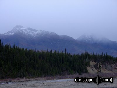 . . .view across the valley looking south at the cloud covered Alaska Range.
