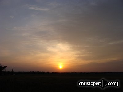 Over a wheat field northeast of Krum, a sunset on a peaceful evening. . .